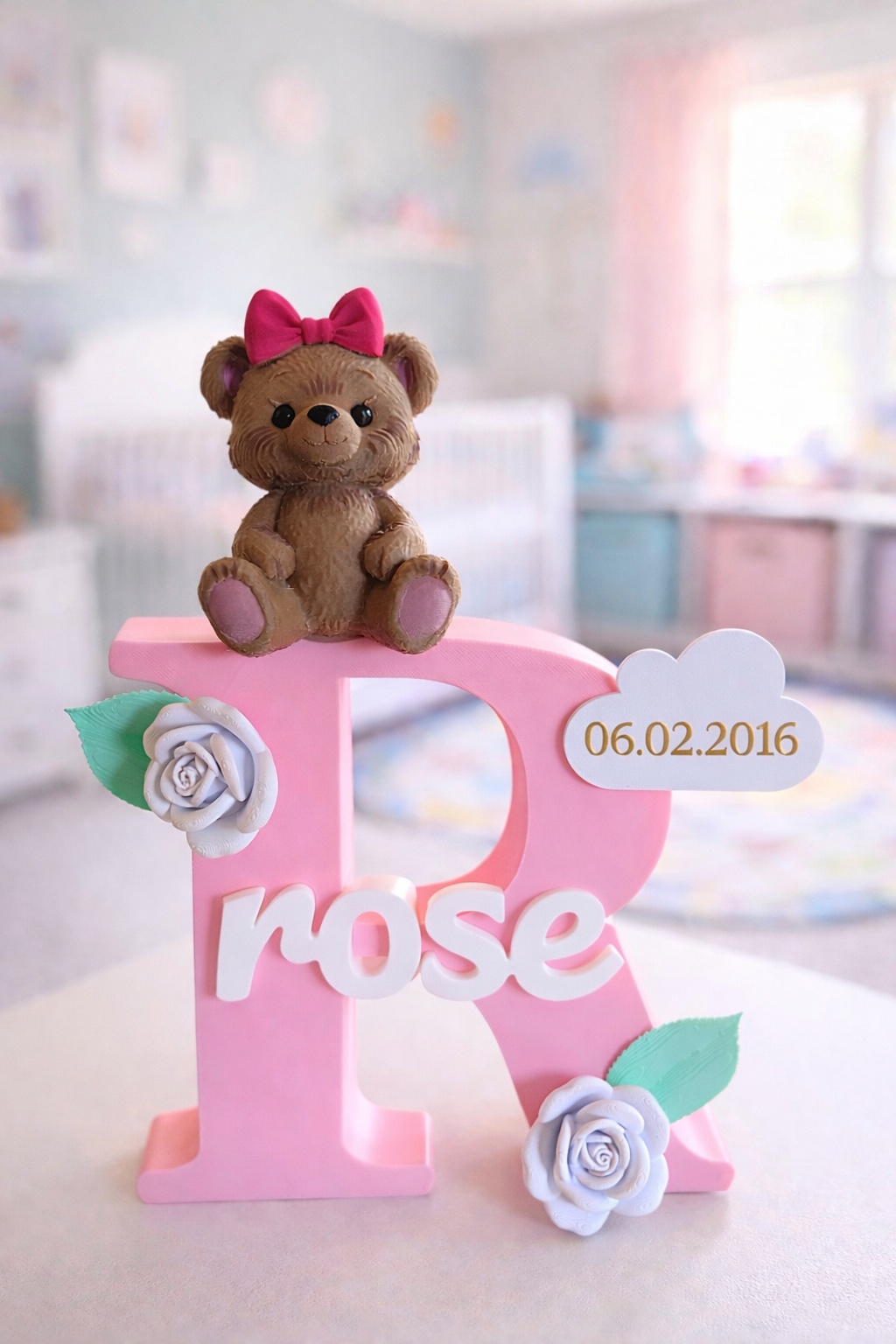 Laat de naam van het kindje stralen met onze 3D-geprinte initialen. Gemaakt van duurzaam PLA, zijn ze verkrijgbaar in diverse vormen – strak of speels. Personaliseer ze met de naam en voeg charmante decoraties toe zoals bloemetjes, diertjes, sterren of een subtiel thema. Een blijvend aandenken dat perfect past in elke kinderkamer of als dierbare herinnering aan de geboorte.